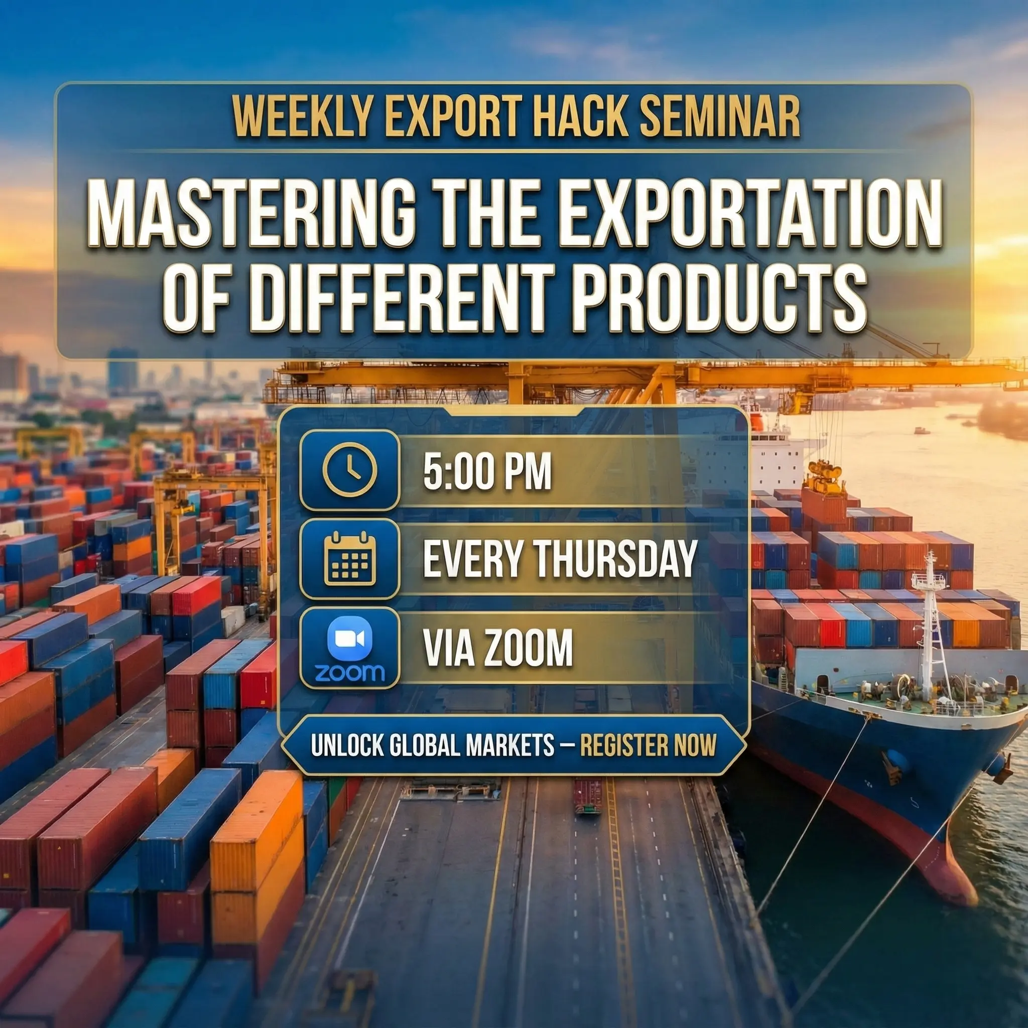 This is a weekly event by Dr. Bamidele that focuses on mastering the exportation of different products.